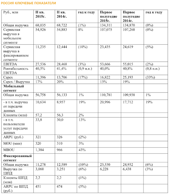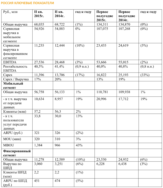 Результаты 2q2015 Вымпелком по России мы в целом оцениваем как очень хорошие. Очевидно, что сделанная нами ставка на разворот лицом к клиенту продолжает давать устойчивые результаты.  Можно с уверенностью говорить о стабилицзации ситуации.