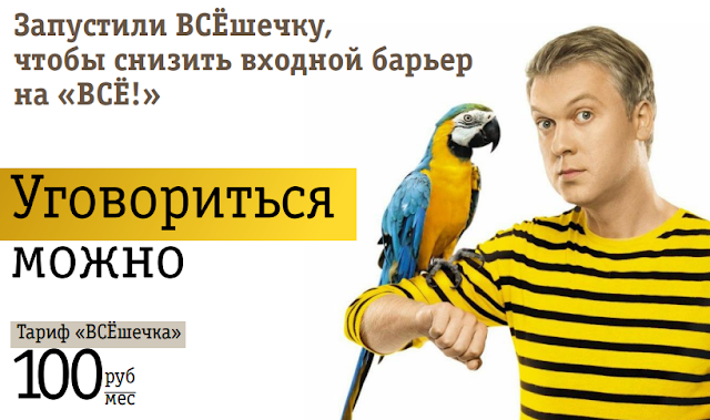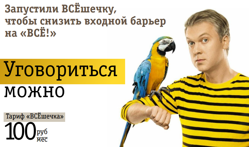 Для того, чтобы снизить входной барьер и облегчить переход к пакетному принципу ценообразования для тех клиентов, которые привыкли к Pay-as-you-go без абонентской платы мы запустили по всей стране легкий bundle - наше внутреннее для него название это "ВСЁшечка". Кстати, хорошо протестировалось и уже прижилось в качестве коммерческого называния. Сейчас эти тарифы активно набирают обороты, особенно в регионах, где ВСЁшечка стоит от 90 рублей в месяц, предусматривая пакет минут на все сети, пакет SMS и так называемый смарт-интернет, подразумевающий, что если пользователь начинает пользоваться интернетом, ему автоматически подключается пакет интернета, если не пользуется, то абонент не платит. Естественно, для ВСЁшечки также характерно полностью бесплатное внутрисетевое общение.