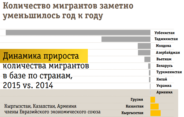 Как я отмечал, мигранты для нас - это проблемная зона. Вы понимаете экономическую ситуацию. Сейчас существенно меньше всего строится. Различные ограничения появились. В итоге в этом году мигрантов меньше, кроме того, они приехали чуть позднее. К счастью, основываясь на нашем конкурентном преимуществе, широком присутствии в СНГ, нам удалось сохранить выручку от этого направления. К сожалению, общий объем мигрантской базы был снижен, что сказалось на снижении доходов от этого сегмента и создало давление на наши финансовые показатели.