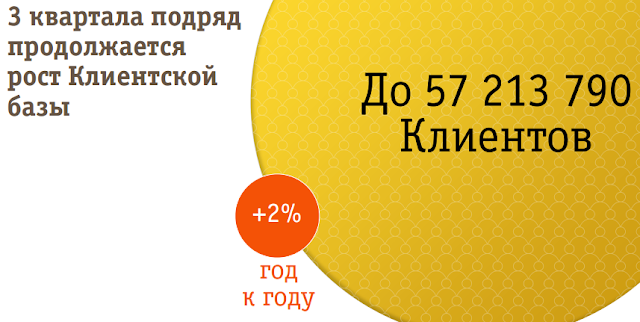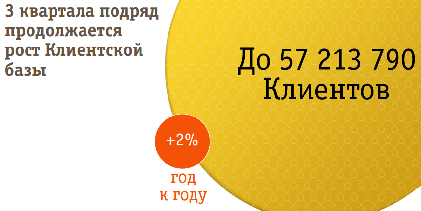 В результате всех этих процессов, мы наблюдаем, как уже третий квартал подряд у нас растет клиентская база. Прирост клиентской базы год к году у нас +2%.