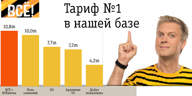 Тарифы ВСЁ! традиционно примечательны также тем, что на них подключено самое большое количество смартфонов. Об этом мы не раз уже говорили, не буду подробно на этом останавливаться.