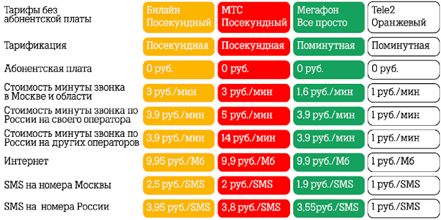 Как я уже отмечал, наше традиционное преимущество - это отсутствие "звездочек" и скрытых условий. Ниже приведено сравнение ТП Оранжевый с аналогичными предложениями наших коллег по цеху. Думаю, что преимущества очевидны.