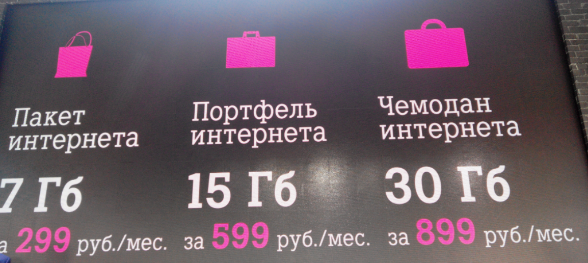 Второй - в каждом ТП есть пакеты минут, SMS и интернета различного объема. Каждый абонент может выбрать пакет с оптимальным для него сочетанием.