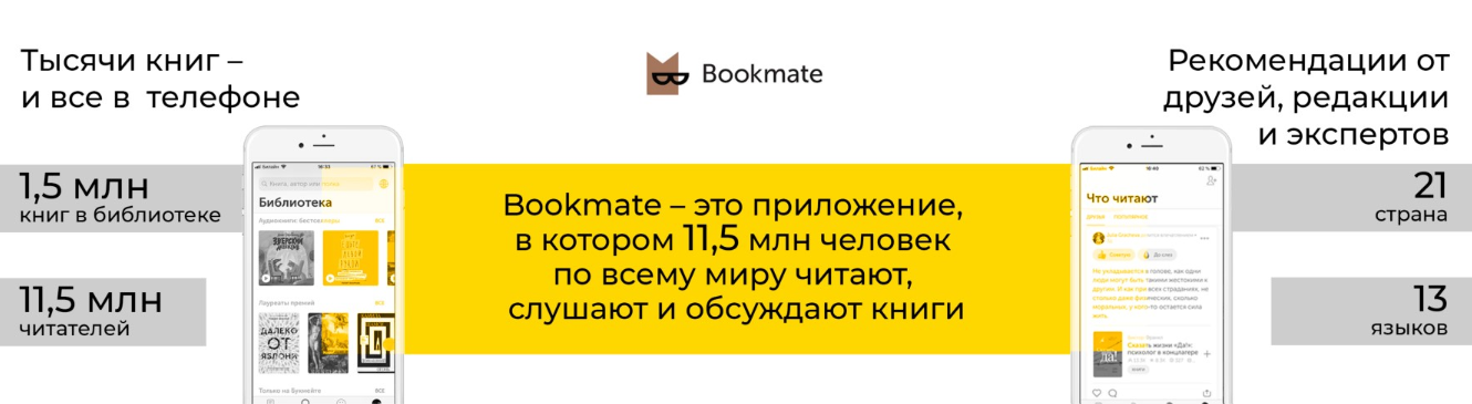 Достаточно быстро мы убедились в том, что наша идея и наше приложение работают. С 2014 года началась наша работа на зарубежных рынках. На сегодня Bookmate присутствует в 21 стране. У нас есть книжки на 13-ти так называемых "значимых" языках, которыми пользуются сотни миллионов читателей.