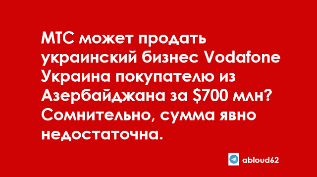 Возможна ли такая продажа? Да. В Украине российскому бизнесу МТС сейчас в целом неуютно, сохраняется риск получения различного рода санкций. "Мягкая продажа" бизнеса компании Vodafone, которую многие ожидали, похоже, так и не состоялась. В этом плане предложение, пришедшее из Азербайджана выглядит интересным.