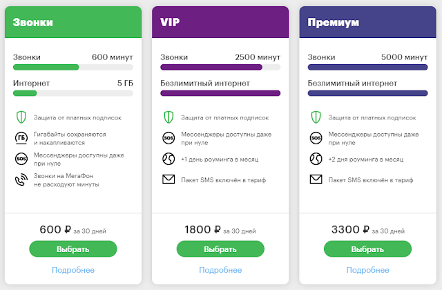 В премиальных тарифах VIP и Премиум сочетаются и большие пакеты минут и дополнительные привилегии в роуминге (мы же когда-нибудь сможем снова ездить за границу?) - за каждый месяц пользования тарифом VIP МегаФон обещает день бесплатной связи в роуминге, абонентам на Премиуме будет "капать" по два дня без оплаты в роуминге. Эта опция действует только для абонентов Москвы, С.-Петербурга и Самары.