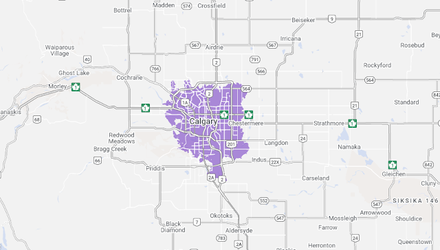 Карта покрытия 5G Telus в Калгари на момент запуска.