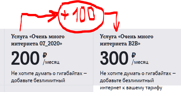 Также с 07.07.2020 изменяются условия услуги «Очень много интернета B2B»: с указанной даты запущена обновленная версия услуги - 300 руб. в месяц. Кроме обновленной в сторону удорожания на треть цены, других обновлений не заметно.