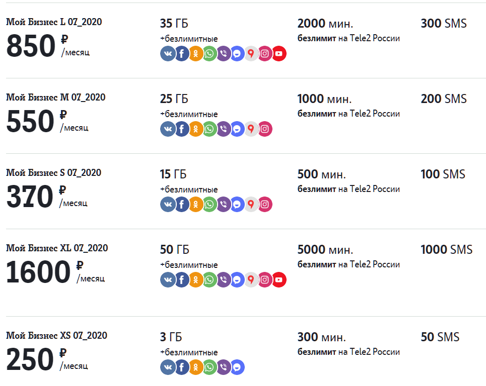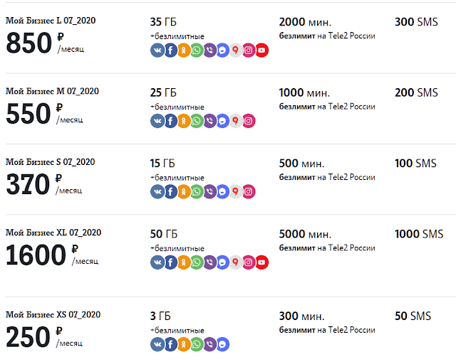 С 07 июля 2020 года тарифные планы «Мой Бизнес XS», «Мой Бизнес S», «Мой Бизнес M», «Мой Бизнес L», «Мой Бизнес XL» оператора Tele2 Россия переименованы в «Мой Бизнес XS 07_2020» «Мой Бизнес S 07_2020», «Мой Бизнес M 07_2020» и «Мой Бизнес L 07_2020», «Мой Бизнес XL 07_2020» соответственно и закрыты для подключения и перехода.
