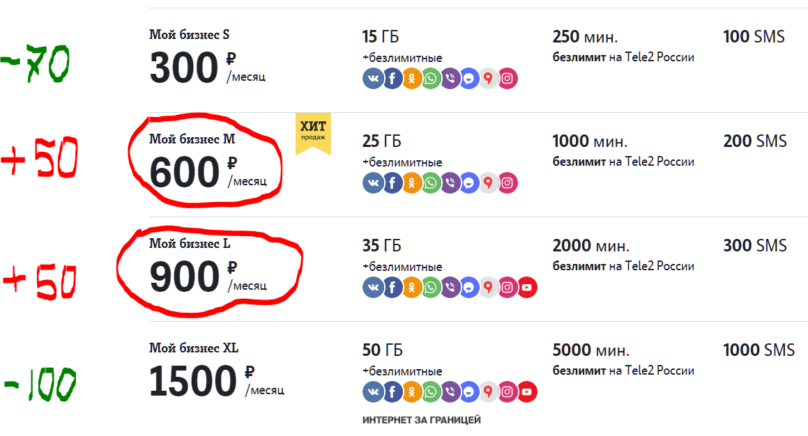 Из линейки пропал самый бюджетный "Мой бизнес XS" за 250 руб в месяц, зато появился "Мой бизнес Unlim" за 800 руб в месяц.
