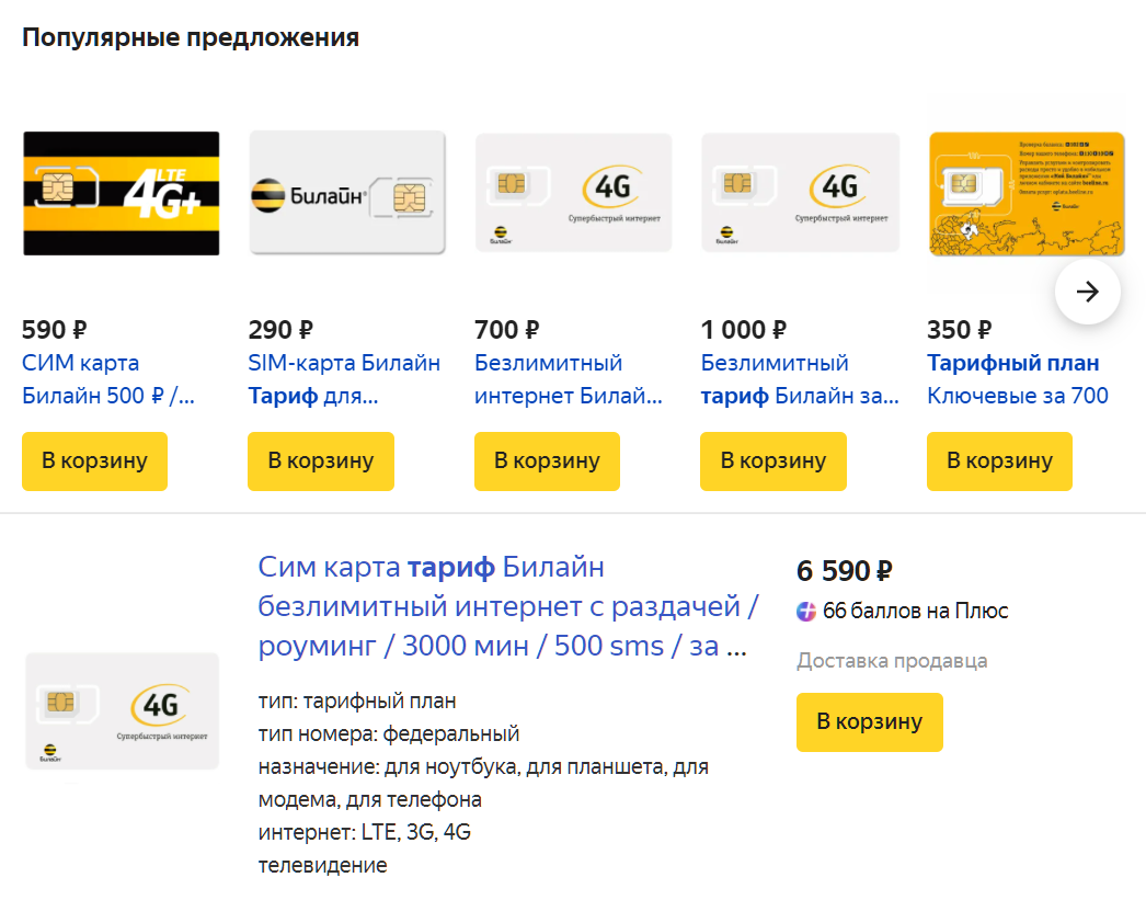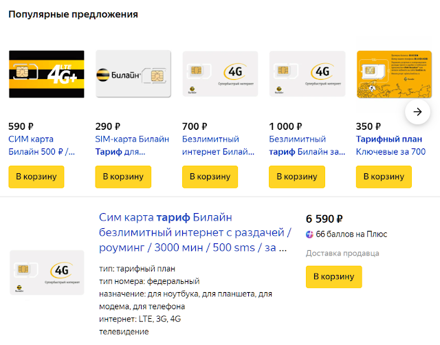 Симки Билайн можно найти в разделе "Электроника - тарифные планы и мобильные номера", например поиском по Яндекс.Маркет.