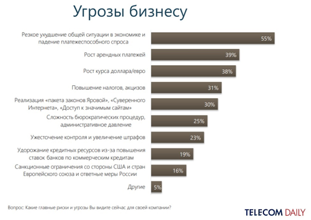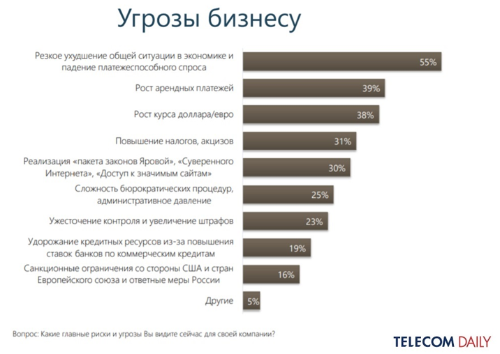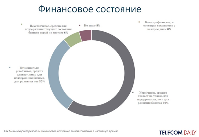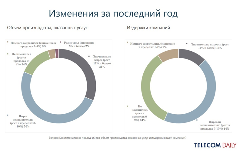 Обязательное условие опроса – интервьюирование одного из ключевых представителей компании (владельцы, директора технических подразделений, начальники отделов бухгалтерии, маркетинга и развития). Основными параметрами опроса стали внутренние и внешние факторы, описывающие состояние операторского бизнеса: изменение объемов оказываемых услуг (производства) за последний год, изменение объемов издержек (производственные, а также инвестиционные затраты), уровень финансового состояние (хватает ли доходов на поддержание бизнеса, на его развитие), текущие риски и угрозы, прогноз по тарифам на услуги связи по рынку в целом на следующий год.