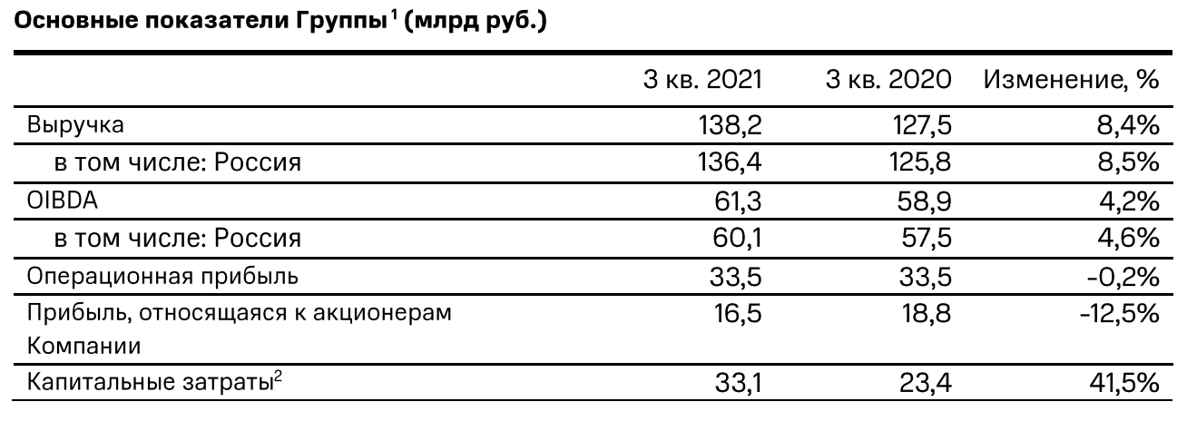 Сразу отметим заметный, на +8,5% рост выручки, до 138,2 млрд руб., практически полностью это выручка от деятельности в России. В компании это объясняют частичным восстановлением доходов от роуминга.